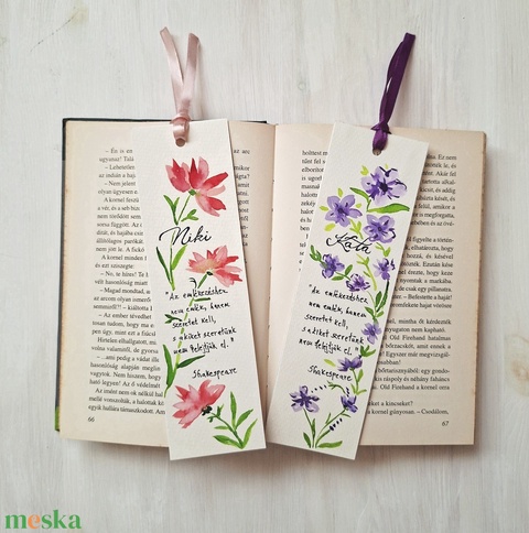 Akvarell virágok, levelek- Kézzel festett könyvjelzők idézettel -virágok - NÉVRE SZÓLÓAN!, emlék, névnapra