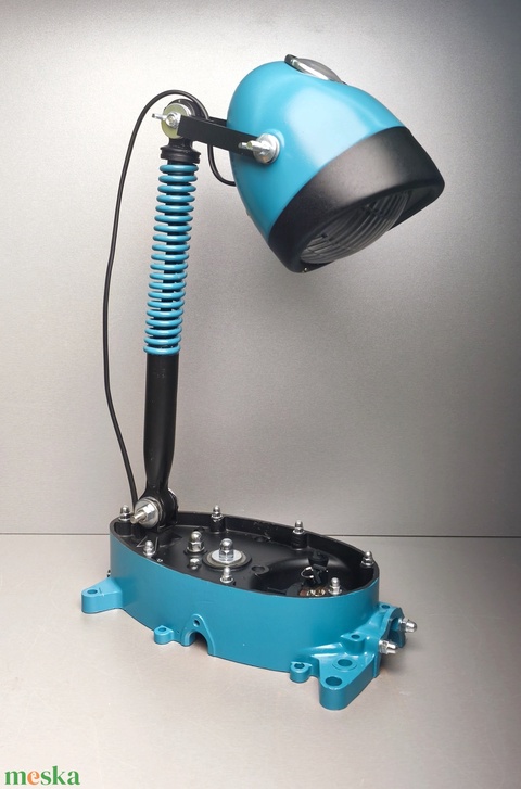 - Anyaga: motor alkatrész, lámpafej, rugóstag, led izzó, motorblokk, kulcsos kapcsoló