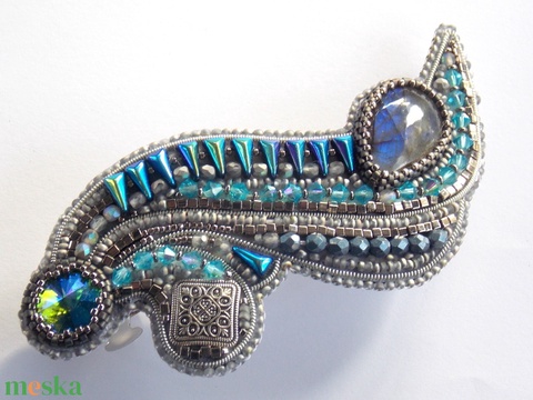- Anyaga: delica, miyuki kocka , miyuki kása gyöngy, preciosa bicon, francia drót, vexolo, cseh csiszolt, preciosa kristály, labradorite, fémgomb