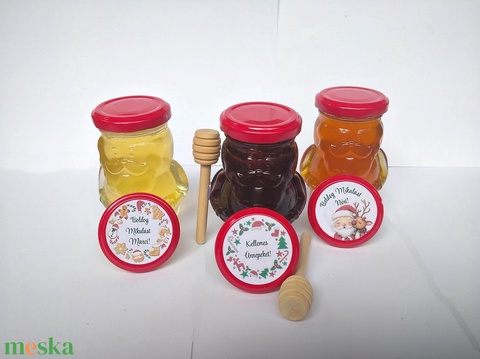 Mézeskalács ízű Üveg MIKULÁS mézzel töltve, személyre szabható az általad kért felirattal, céges ajándéknak is