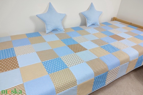 Világoskék-bézs patchwork ágytakaró
