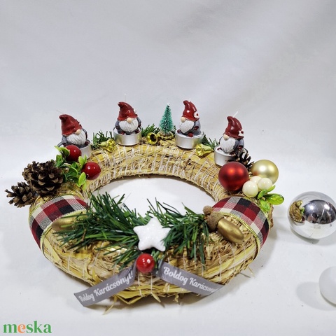 Adventi manó koszorú, asztaldísz, karácsonyi dekoráció