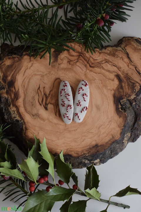 Kézzel hímzett lenvászon hajcsat szett – 2 db karácsonyi kollekció)