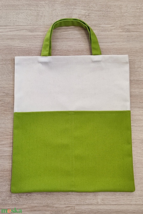 Ovis táska, ovis zsák, zsebes, zöld-fehér