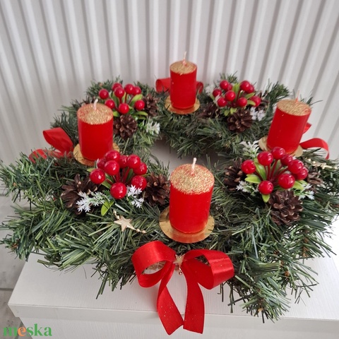 Karácsonyi klasszikus adventi koszorú, asztaldísz