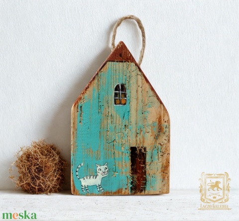 Házikó cirmossal - Rusztikus Fatábla, Ajándék ötlet - Egyedi Falidísz, Házikó, Macska, Cica