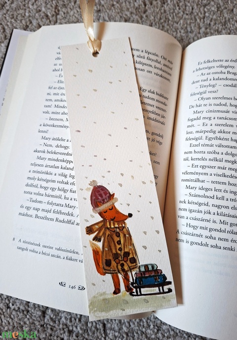 Róka szánkóval- Kézzel festett akvarel könyvjező