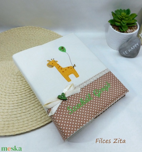 Zsiráfos hímzett baba fotóalbum névvel - textil fényképalbum hímzett névvel