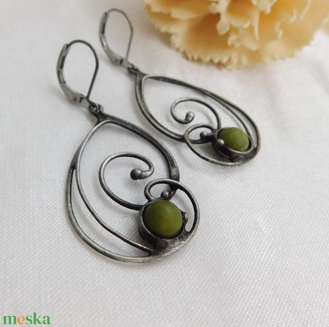 - Anyaga: jáde, rézdrót, ólommentes ón, felületkezelő anyagok, acél fülbevaló akasztó, réz, ón, acél