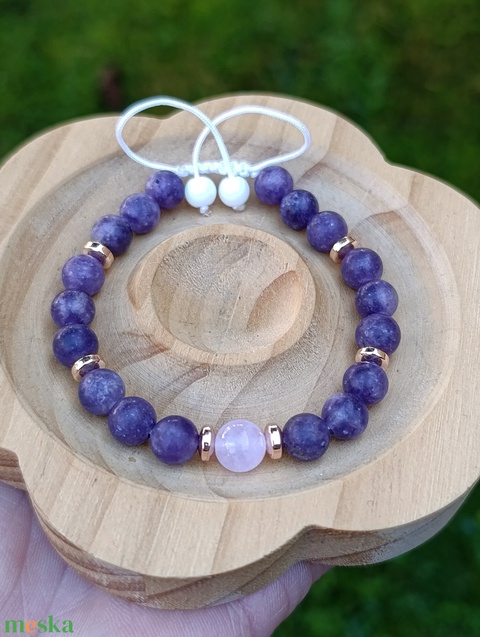 - Anyaga: microcord, lepidolit, levendula ametiszt, hematit