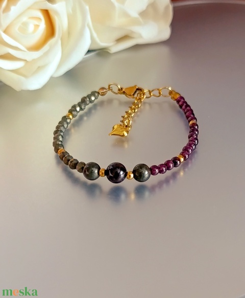 Gránát és pirit kapcsos ásványkarkötő a bőségért
