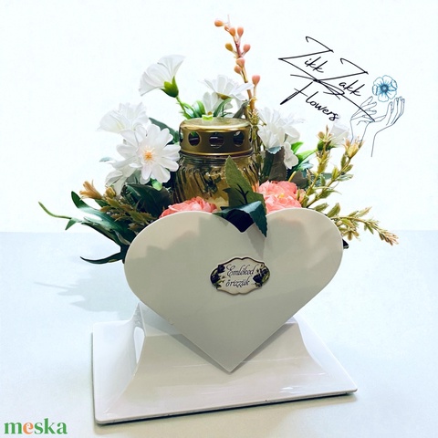 Fehér Szív Emlékmécses – Tavaszi Virágokkal