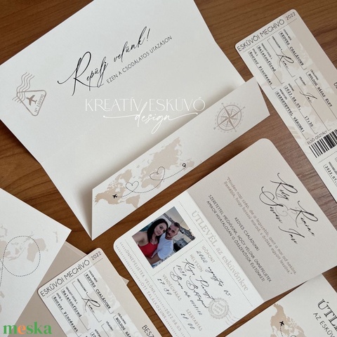 Passport fényképes útlevél meghívó, Beszállókártya, Repülőjegy, bézs, rosegold