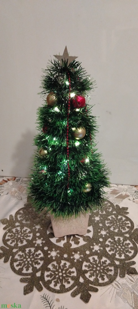 - Anyaga: műfenyő, karácsonyi gömb, led, hungarocell, kaspó
