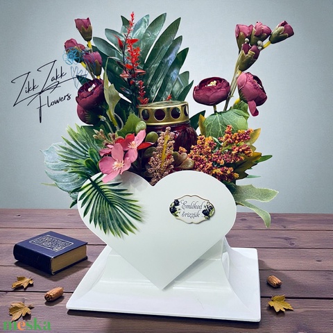 Bordó Szív Mécses kompozíció – Őszi Hangulatban