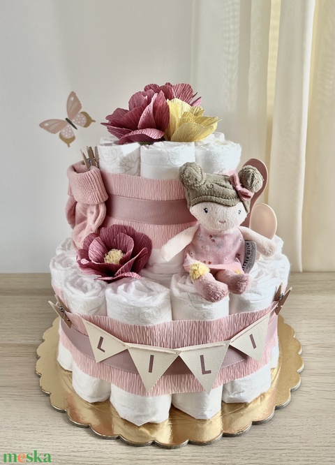 pelenka, plüss, babakanál, babazokni, papírvirág, zászlófüzér