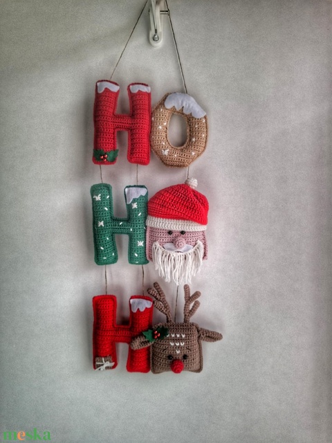 Horgolt Ho-Ho-Ho karácsonyi dísz