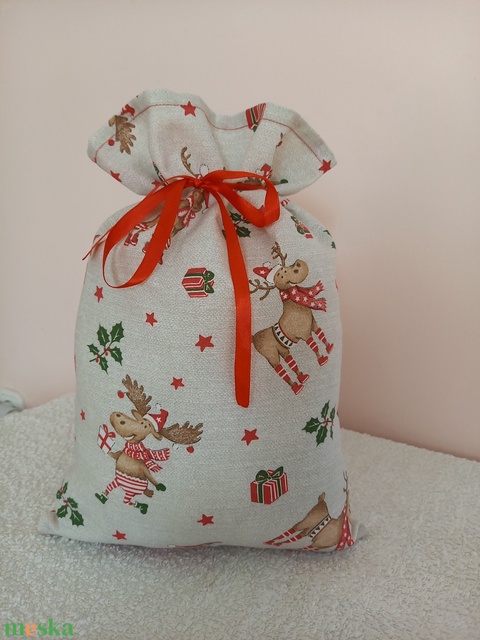 Vidám Karácsonyi Szarvasok Mikulászsák, ajándékzsák