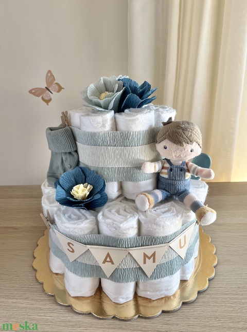 - Anyaga: papírvirág, plüss, pelenka, babakanál, babazokni, zászlófüzér