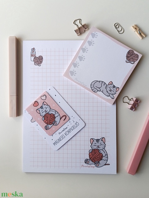 Jegyzettömb, könyvjelző szett - szürke cicás