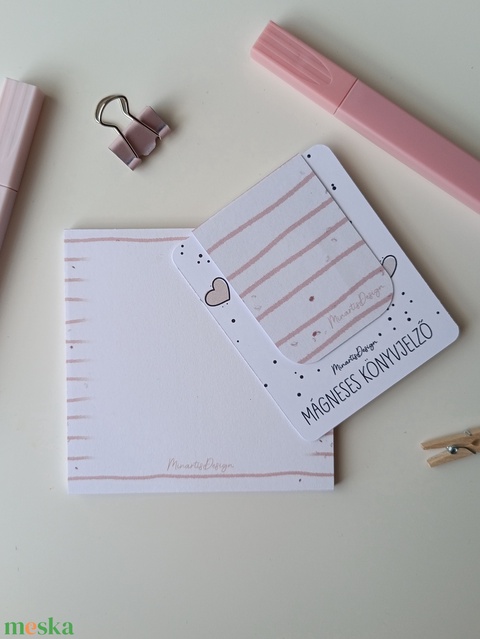 Jegyzettömb, könyvjelző szett - rózsaszín csíkos