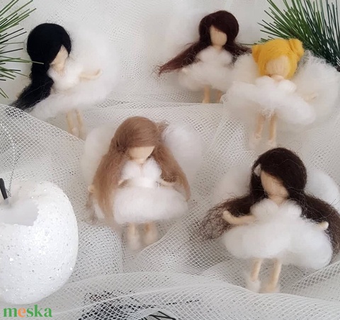 Waldorf tűnemezelt gyapjú angyalkák karácsonyfa dísz 5 db/doboz