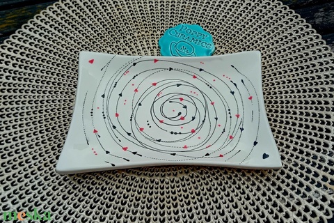 Fekete-fehér vonal mintás kerámia tálka, szögletes