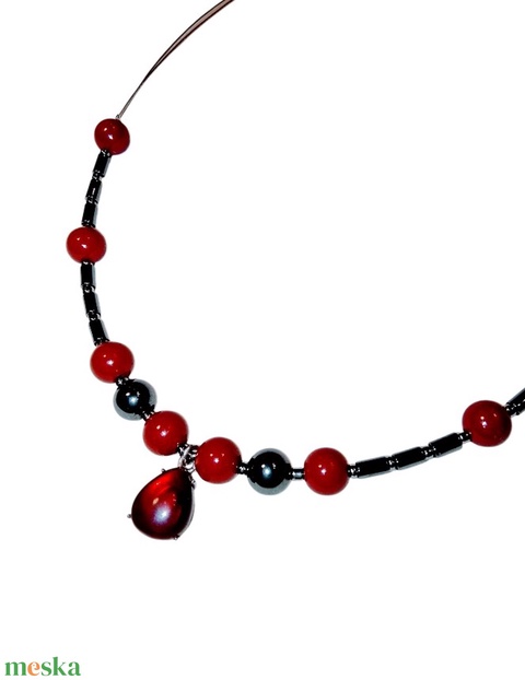 Ásvány nyaklánc, nyakék borostyánnal és hematittal