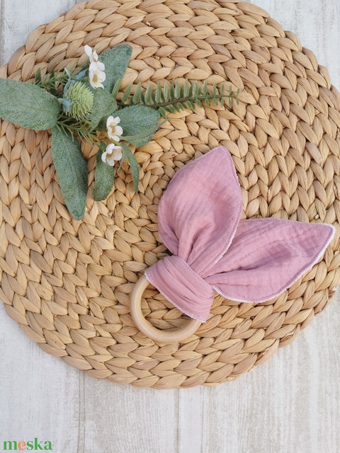 Nyuszifüles rágóka fa karikával - "Mályva duplagéz anyagból"