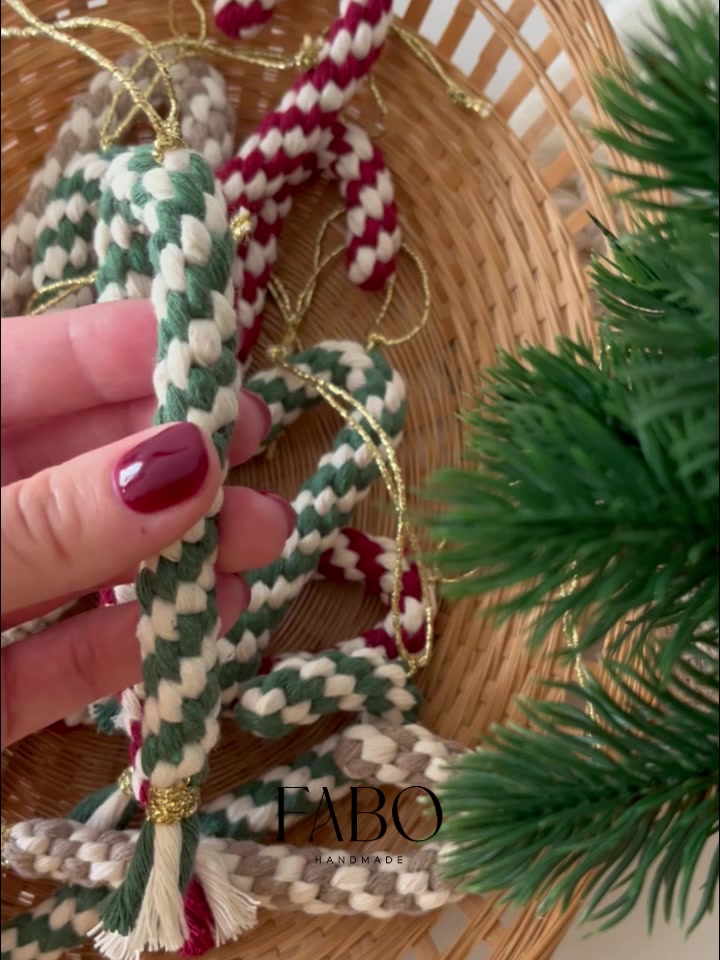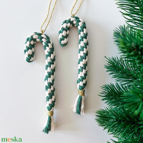 2 db zöld cukorka karácsonyfadísz, páros karácsonyi makramé cukorpálca dekoráció