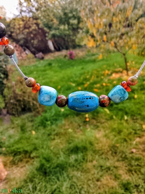 Türkiz és borostyán nyaklánc és fülbevaló szett