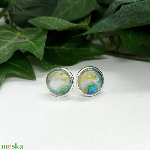 Kék és zöld színű márvány mintás pötty fülbevaló