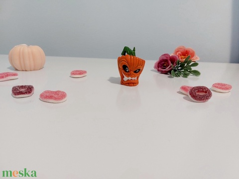 3D nyomtatott, kézzel festett, Halloweeni gonosz kis tökfej, Halloweeni faluhoz, városhoz, ajándékba, dekoráció, új