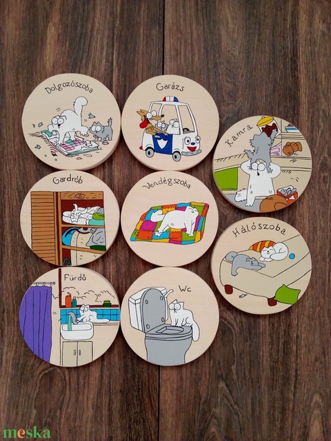 Simon' cat - Ajtójelölő tábla, ajtó jelölő tábla, névtábla, felirat, kopogtató - 8 db-os szett