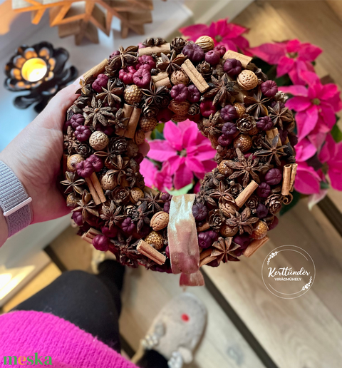 - Anyaga: szalma koszorú, festék, kenderzsineg, toboz, bársonyszalag