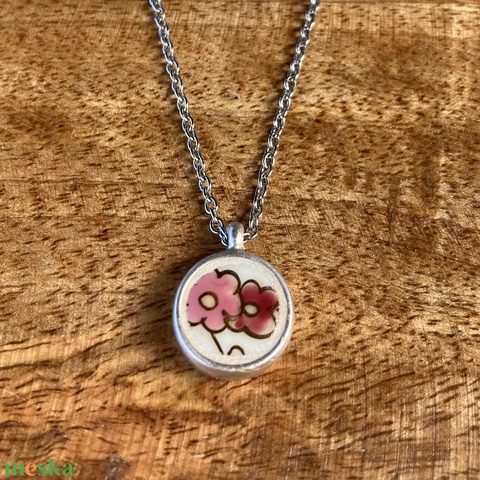 Zsolnay mentett darabok - virágos porcelán nyaklánc - pici medál nemesacél lánccal