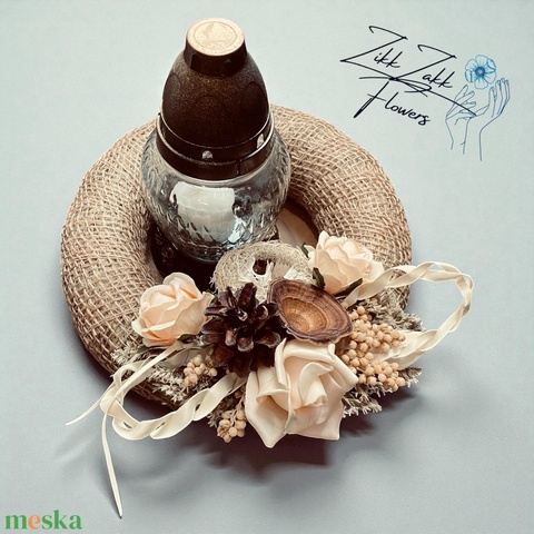 Bézs Rózsás Mécses koszorú – Natúr Színekben