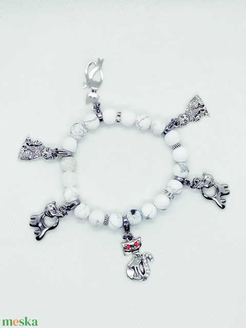 Sokmedálos jáde karkötő – cica-rajongóknak