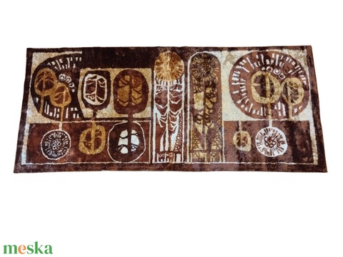 Mid Century mokett faliszőnyeg, Vintage barna falvédő, Retro modern minimalista fali szőnyeg, Gyűjtői retro falvédő