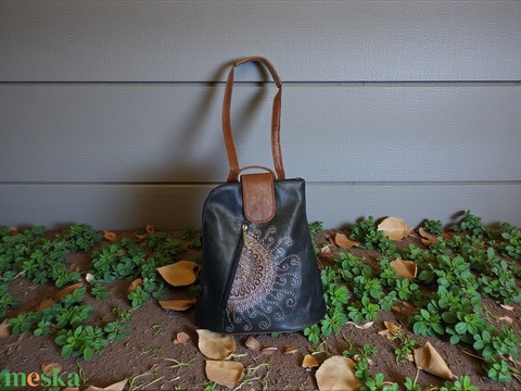Műbőr hátitáska, kézzel festett, egyedi mintával