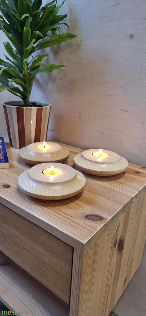 Kőrisfa esztergált mécsestartó 3 db-os szett