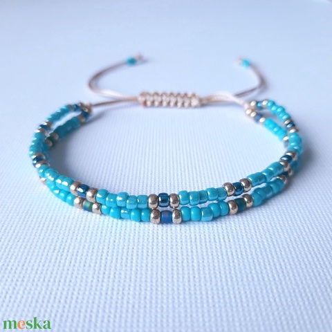 Türkiz, viaszolt zsinóros karkötő
