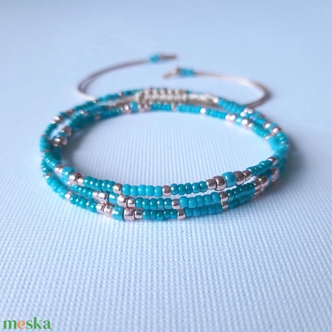 Türkiz 3 soros, viaszolt zsinóros karkötő