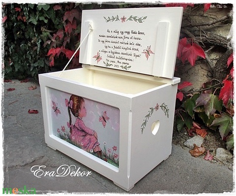gyerekszoba bútorok, romantikus antikolt festéssel készült fa ajándéktárgyak a provence-i stílus jegyében