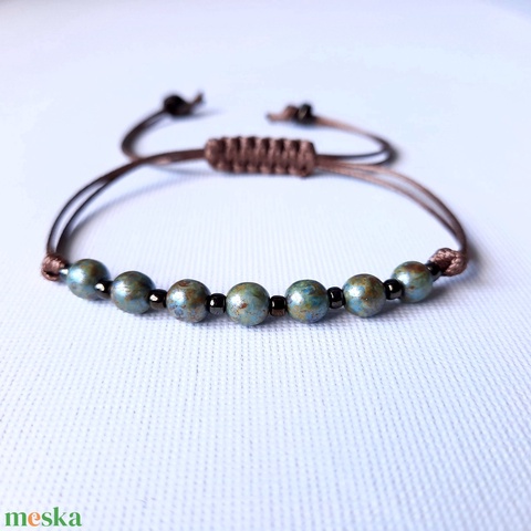 Kőhatású zöld golyós, viaszolt zsinóros karkötő