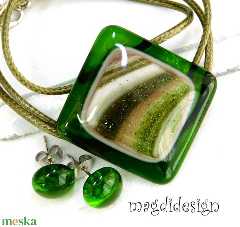 Moha és páfrány üvegékszer szett, nyaklánc, fülbevaló