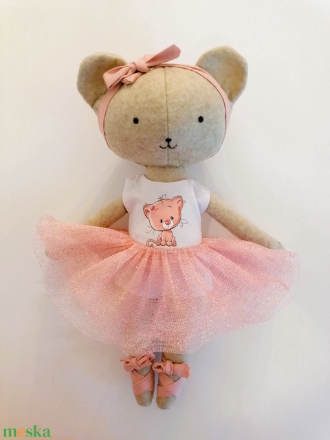 Maci lány balerina ruhában - kézműves, öltöztethető textiljáték figura
