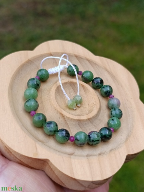 Rubin zoizit és rubin állítható női ásványkarkötő