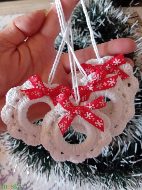 Horgolt karácsonyfadísz fehér