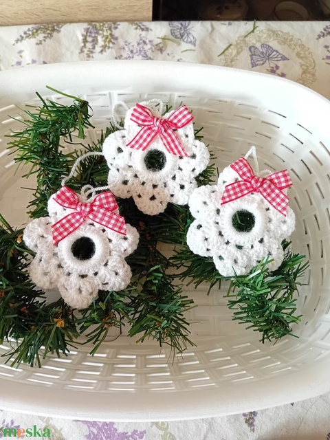 Horgolt fehér dekoráció, fenyődísz